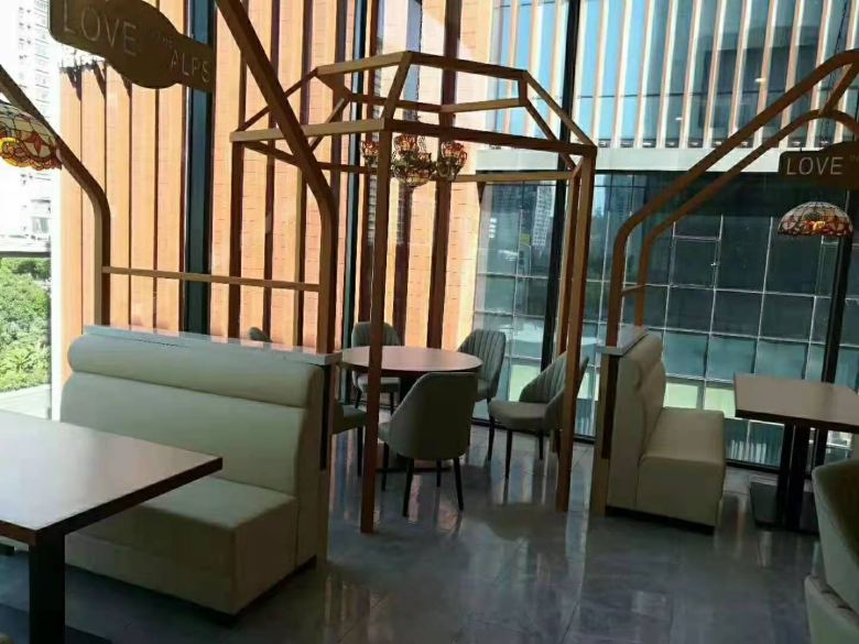 小編忙里偷閑隨手在交貨現(xiàn)場拍攝了幾張店里的照片,通過照片可以直觀的看到餐桌椅安裝之后的效果是非常不錯的,就連卡座沙發(fā)也是非常的有質(zhì)感,而且偷偷的告訴各位老板,我們可是全國為數(shù)不多的為餐飲客戶提供終身質(zhì)保的餐桌椅廠家哦!