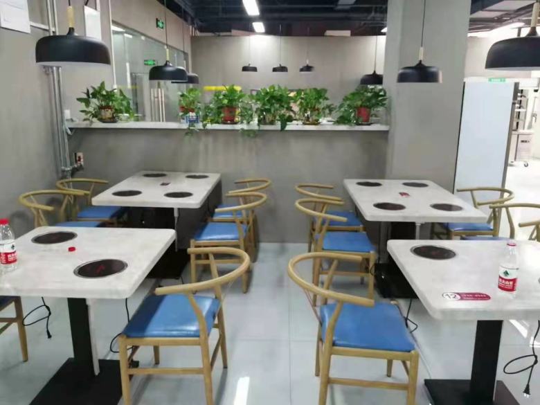 西安鮮辣道川味火鍋店大理石自助火鍋桌椅定做案例