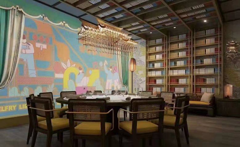 西安長安大排檔之鐘樓圖書館店餐飲桌椅定制案例